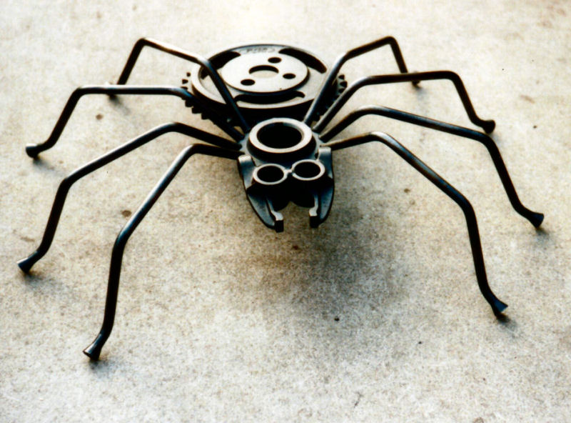 Spid 3 is made from timing gears, rockers and pushrods, and has a wax finish.